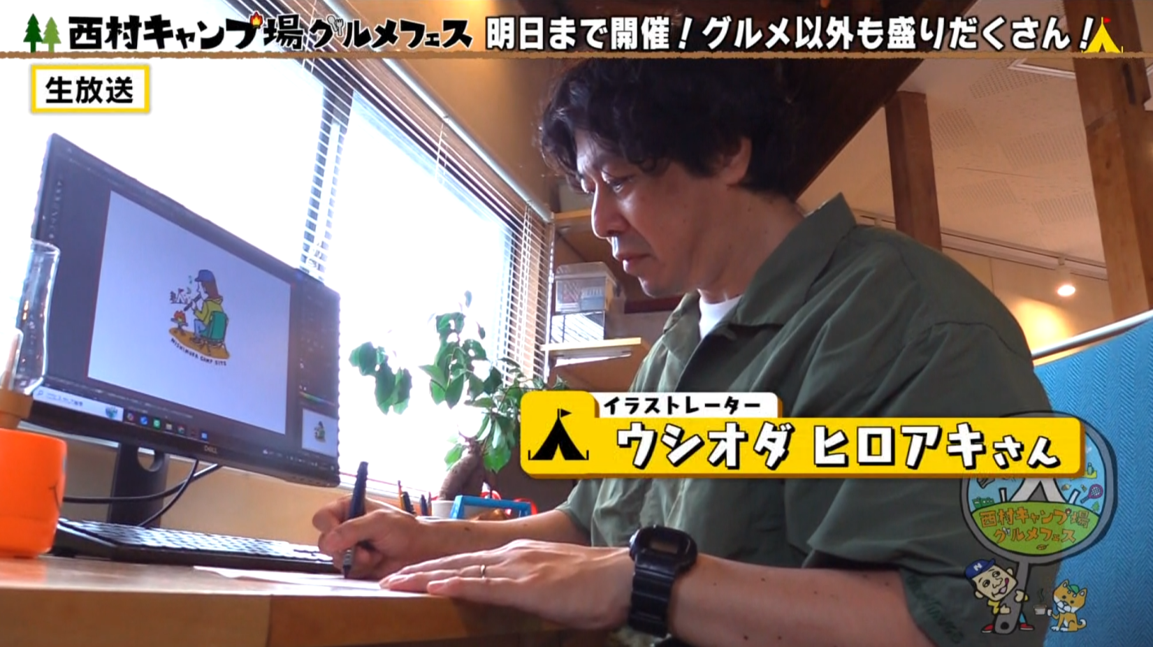 特別企画の生放送『西村キャンプ場』にて、イラストレーター/ウシオダヒロアキと